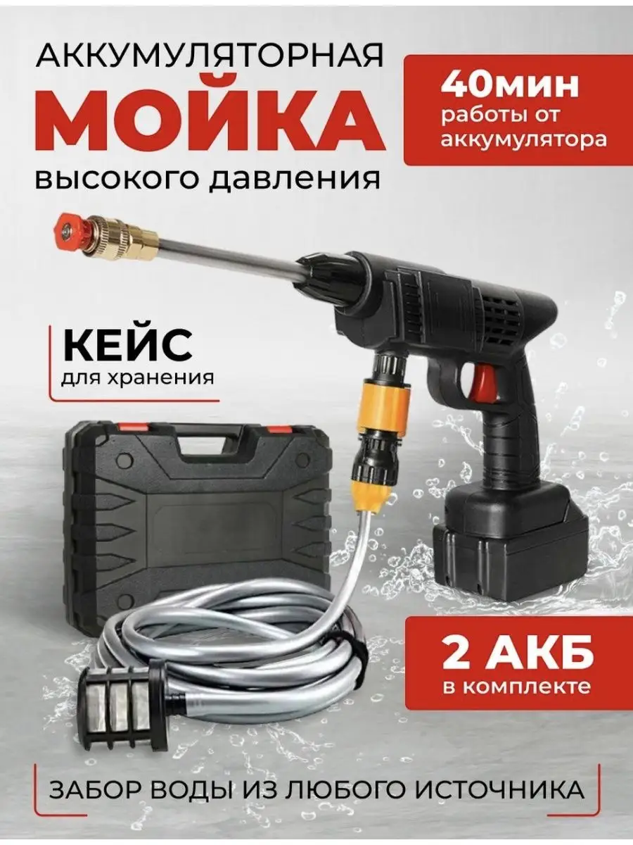 Автомойка аккумуляторная высокого давления с кейсом 2 аккумулятора. Минимойка