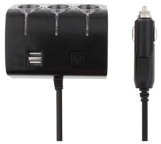Разветвитель автоприкуривателя Olesson №1506 1*3 Входа + USBх2 выхода (3,1A) с кнопкой