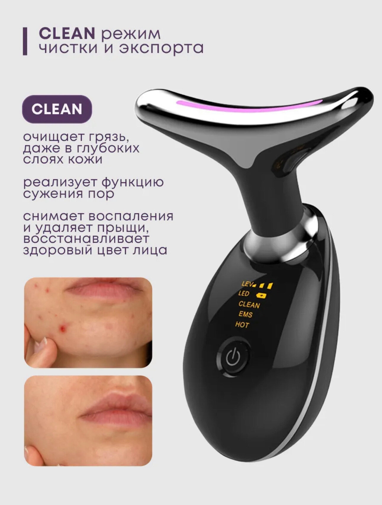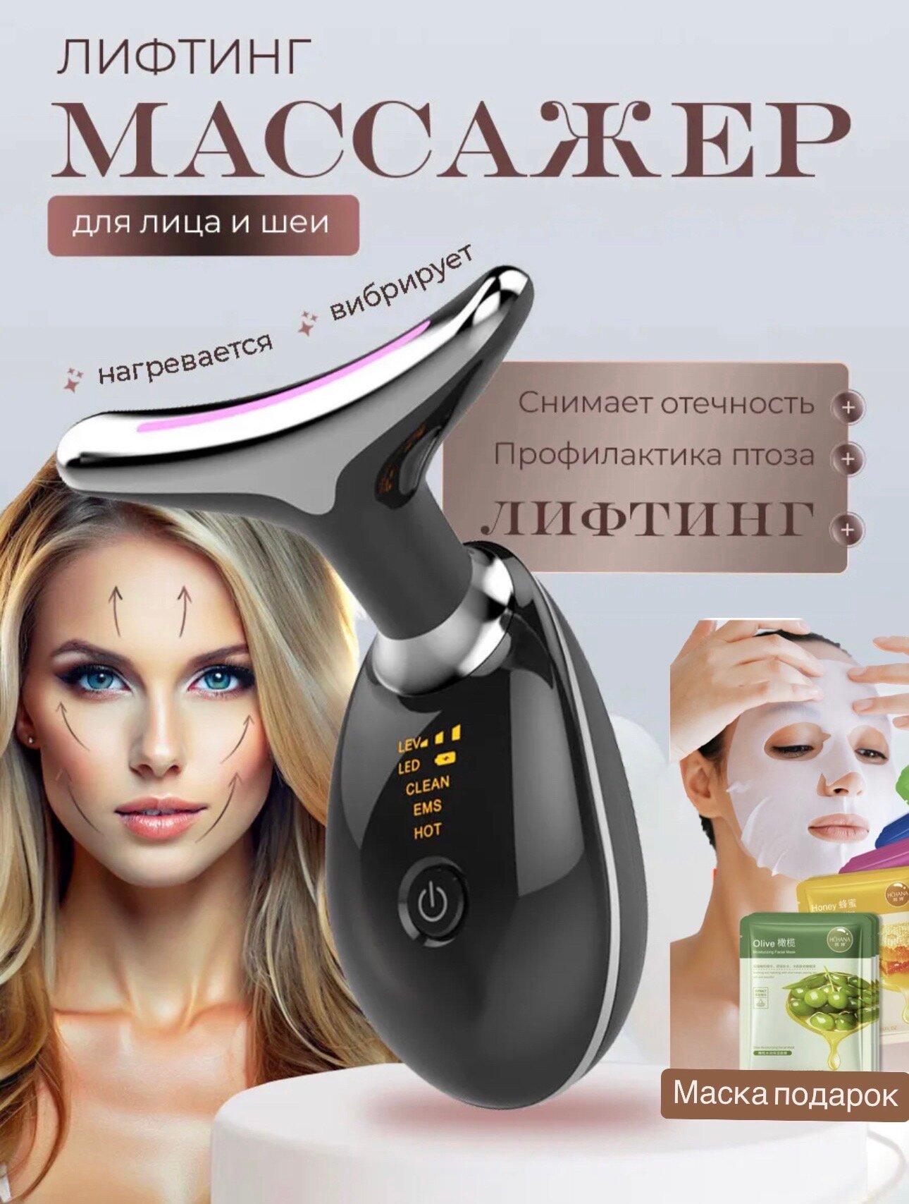 Массажер для лица и шеи микротоковый RF-EMS лифтинг