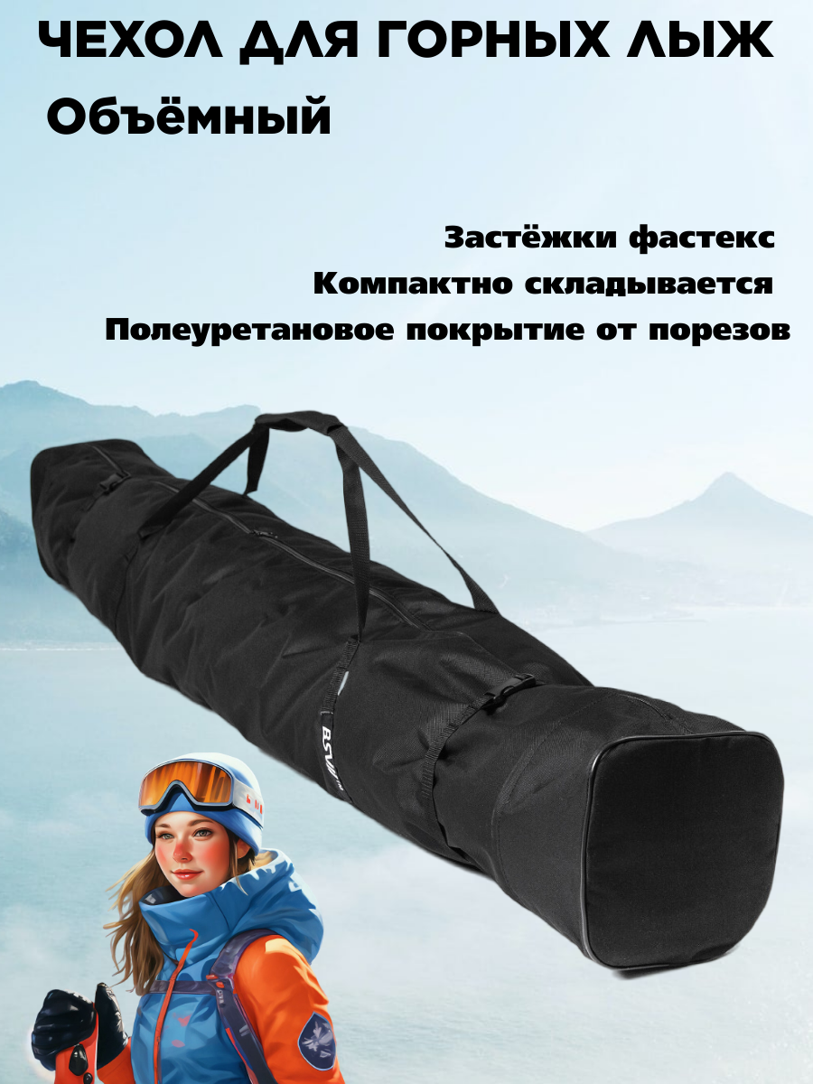 10 цен на Чехол для горных лыж "Объёмный" длина 175 см цвет чёрный