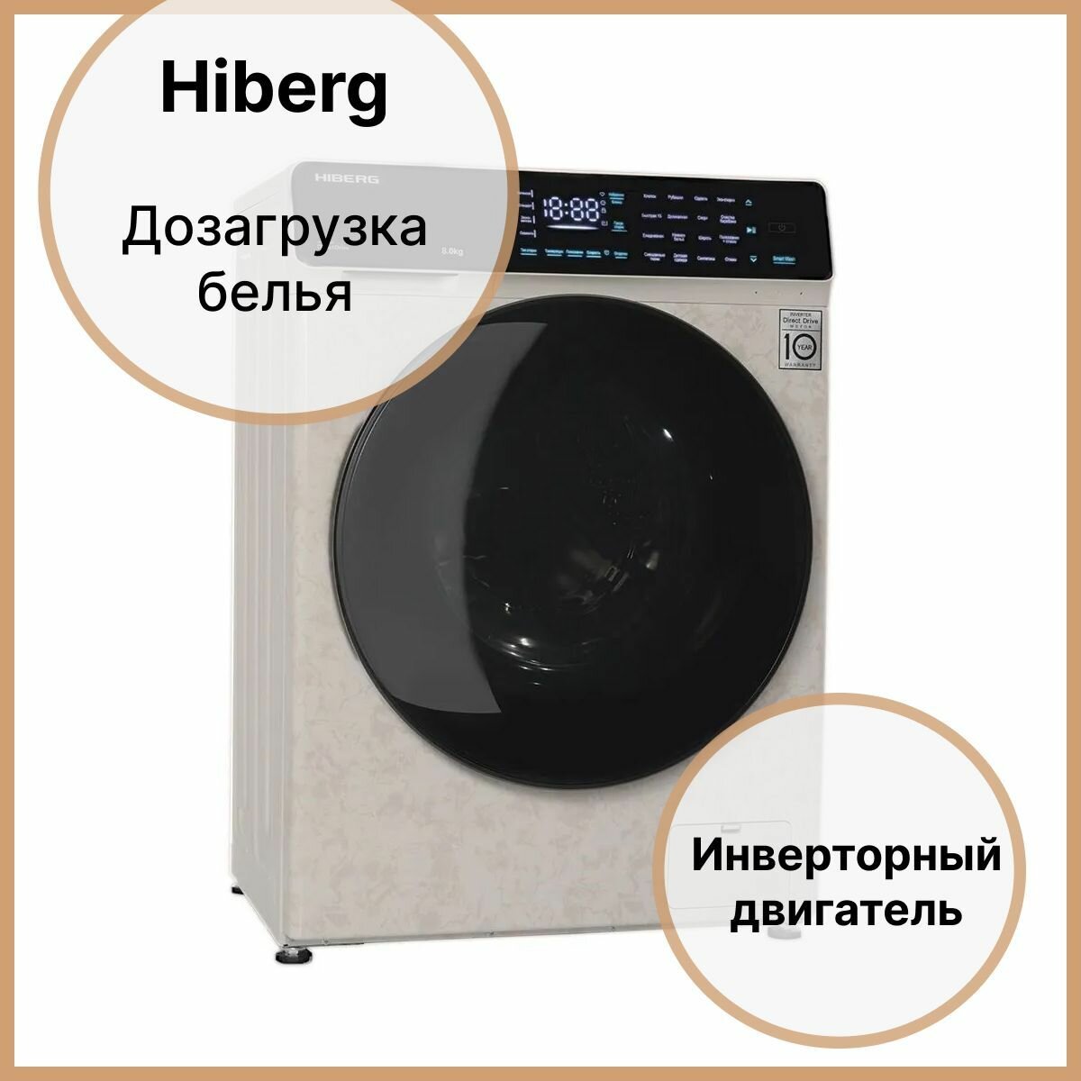 Стиральная машина HIBERG i-DDQ9 - 812 Ym, инверторная, 8 кг загрузка, 1200 об/мин, 16 программ, Smart wash, таймер, бежевый мрамор