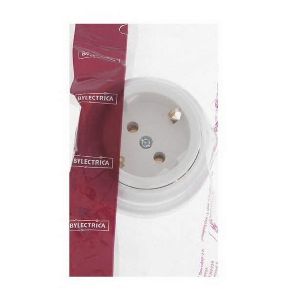 Розетка BYLECTRICA Ретро РА16-0202, 16А, одномест., наруж., с з/к, без крышки, IP20, белая 326 ₽