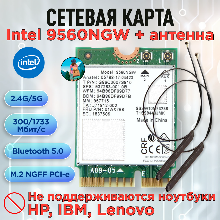 Двухдиапазонная сетевая карта Intel 9560NGW с антенной информация: