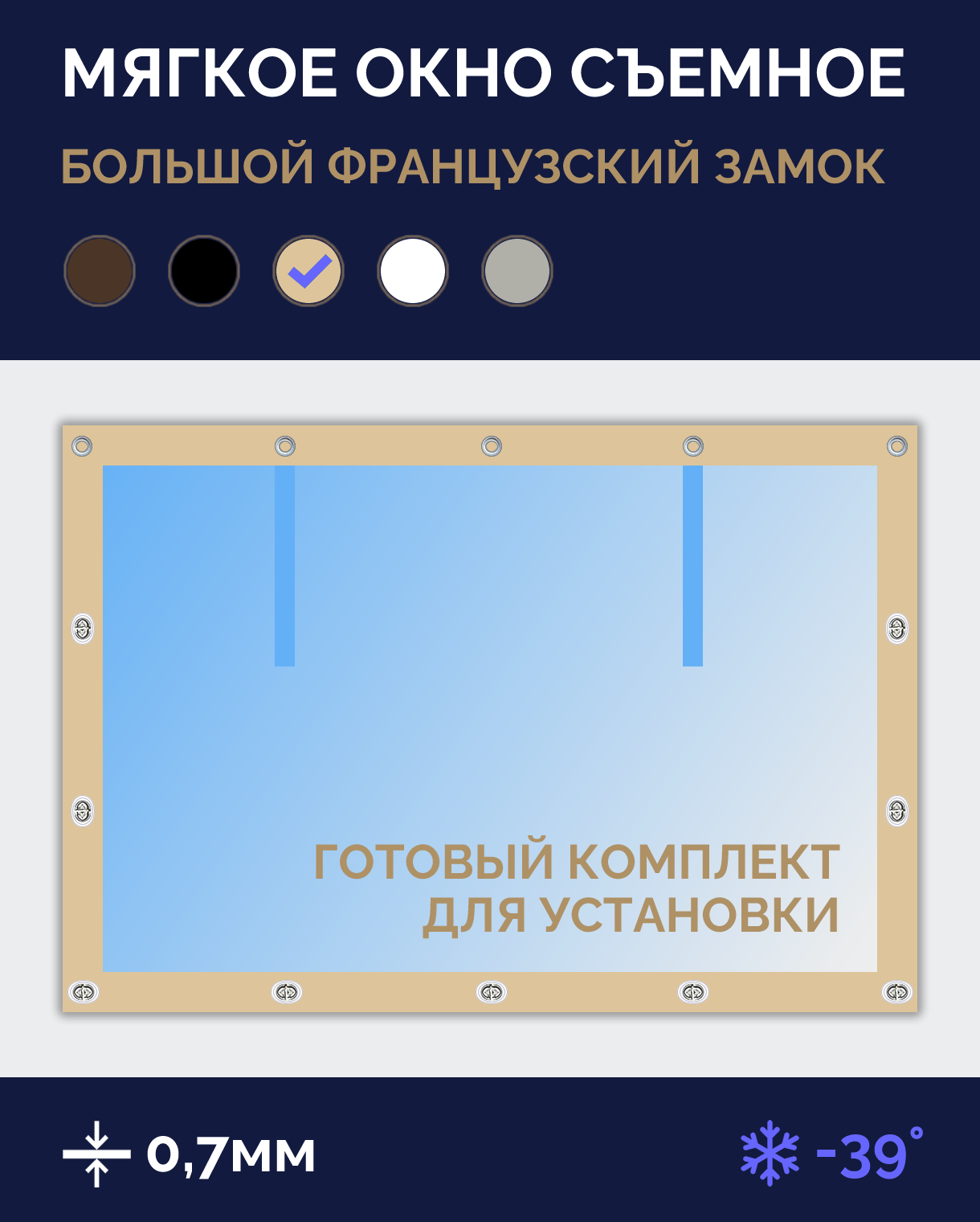 Мягкое окно Софтокна 110х80 см, Прозрачная пленка 0,7мм, Большой французский замок, Бежевая окантовка, Комплект для установки информация: