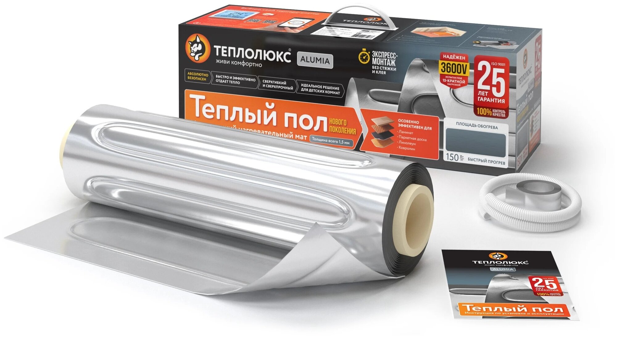 Нагревательный мат, Теплолюкс, Alumia, 9 м2, 1800х50 см, длина кабеля 2 м
