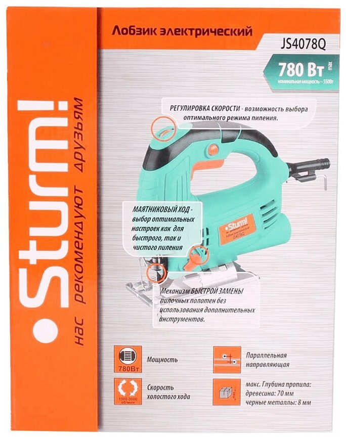 Электролобзик sturm js4078q 780вт
