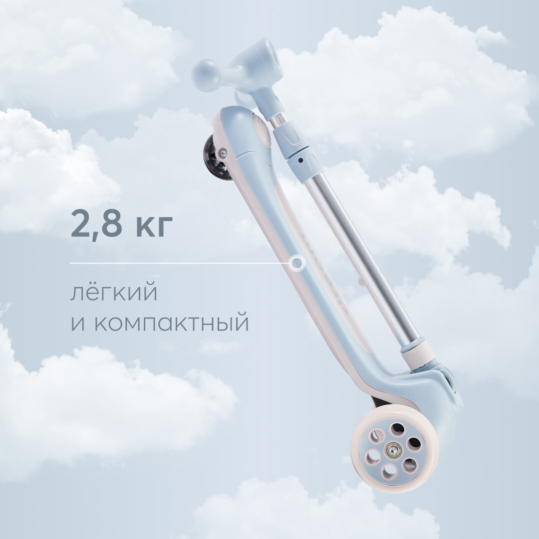 50031, Самокат детский Happy Baby Dream трехколесный со световой подсветкой и музыкой светло-голубой