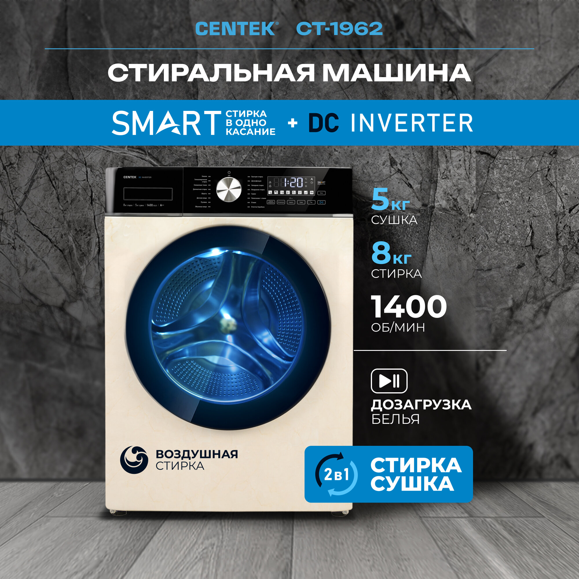 10 цен на Стиральная машина CENTEK CT-1962 бежевая, 8кг, INVERTER, сушка 5кг, пар