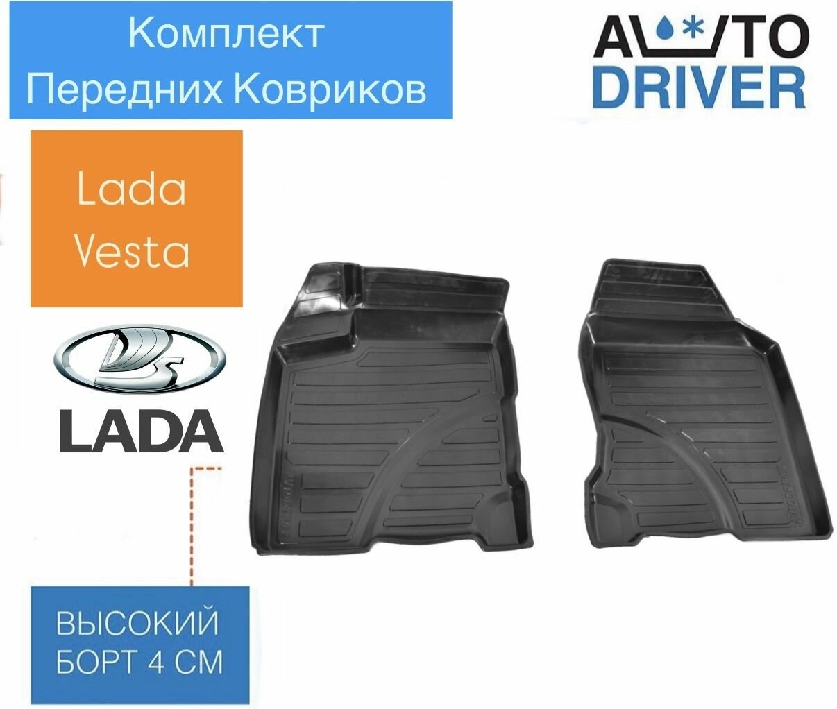 Коврики для ВАЗ Lada Vesta Лада Веста 2 передних 2015-2022 резиновые с бортом Автодрайвер информация: