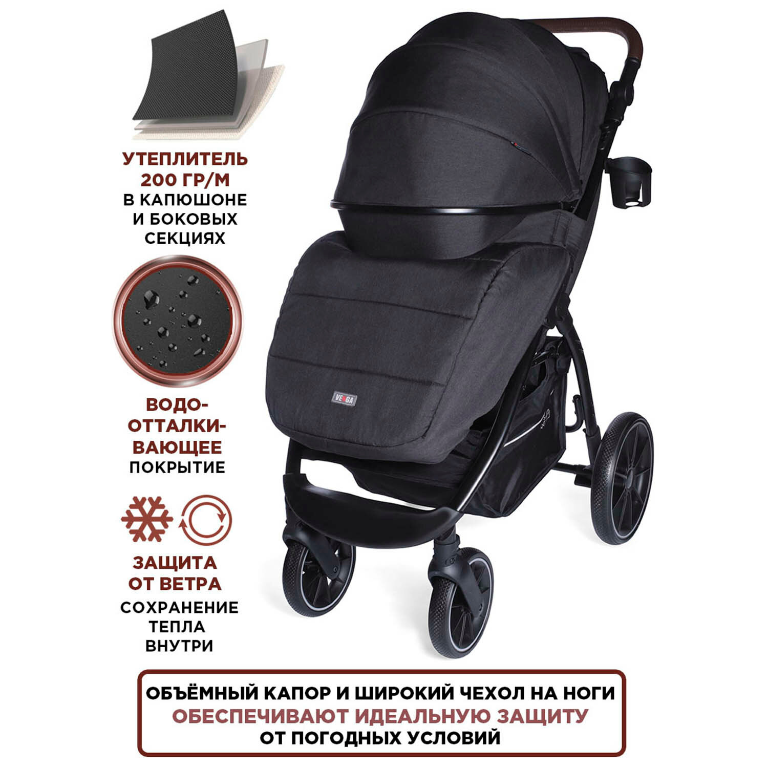 Прогулочная всесезонная коляска Venga с накидкой на ноги и капюшоном 13 990 ₽