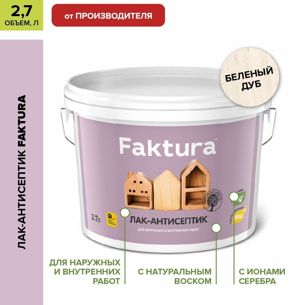 Лак Антисептик Faktura 0.9л Беленый Дуб на Водной Основе с Ионами Серебра и Воском для Наружных и Внутренних Работ / Фактура.
