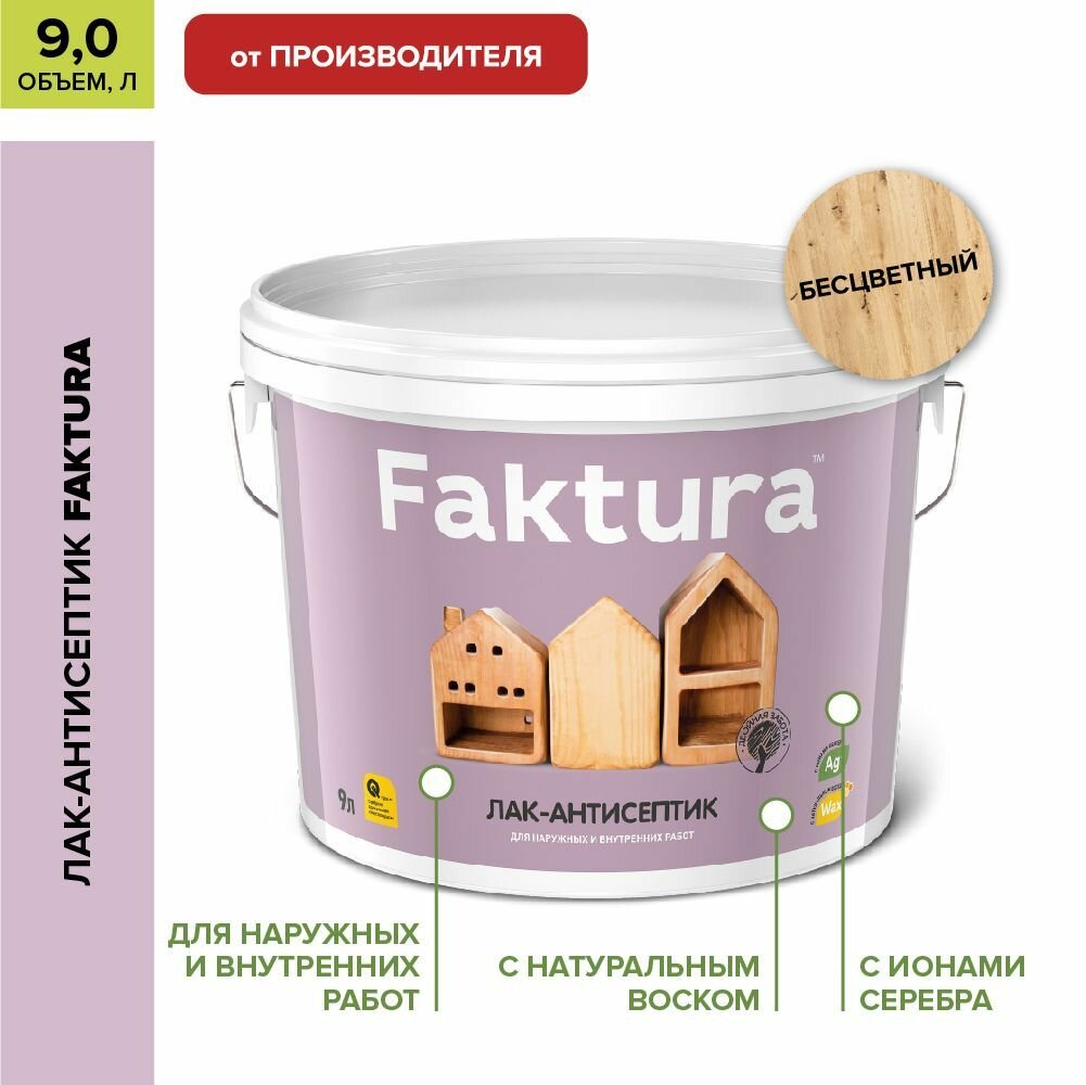 10 цен на FAKTURA лак-антисептик водорастворимый с натуральным воском и ионами серебра, бесцветный (9л)