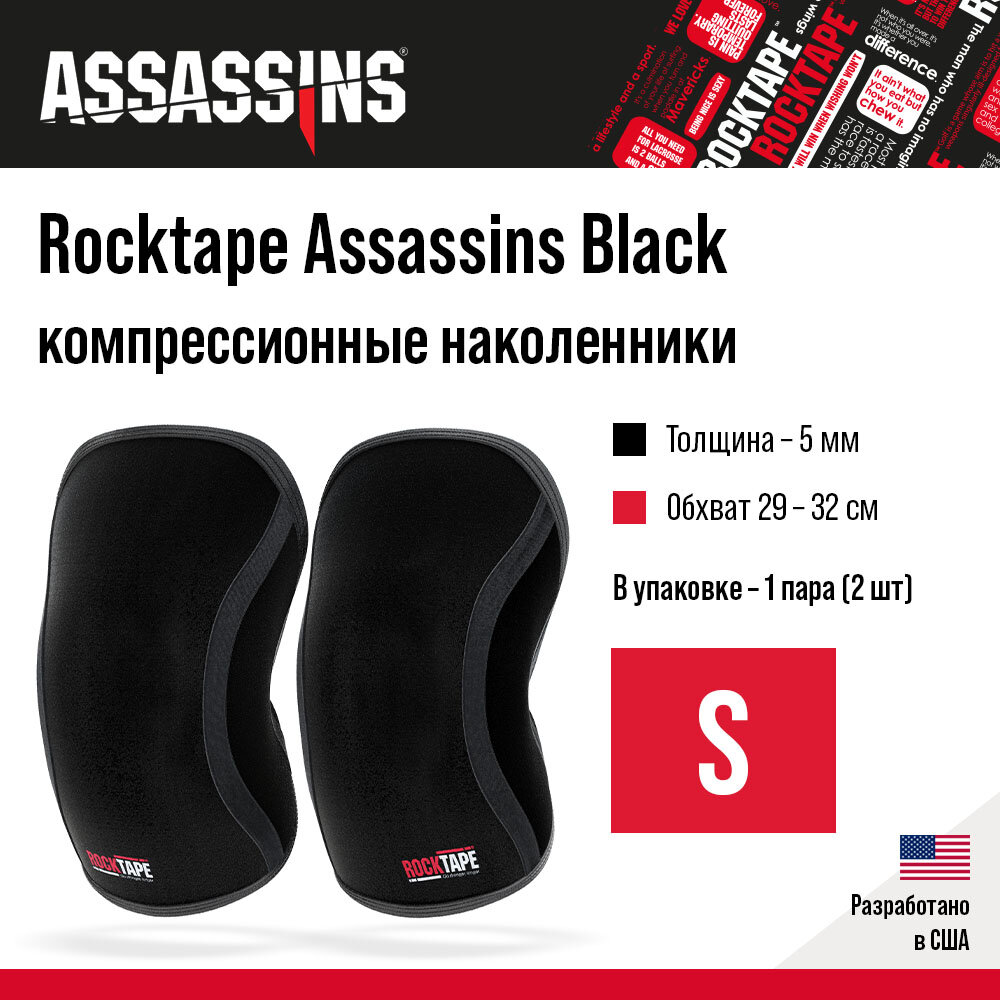 Компрессионные наколенники Rocktape Assassins, черные, толщина 5мм, размер S информация:
