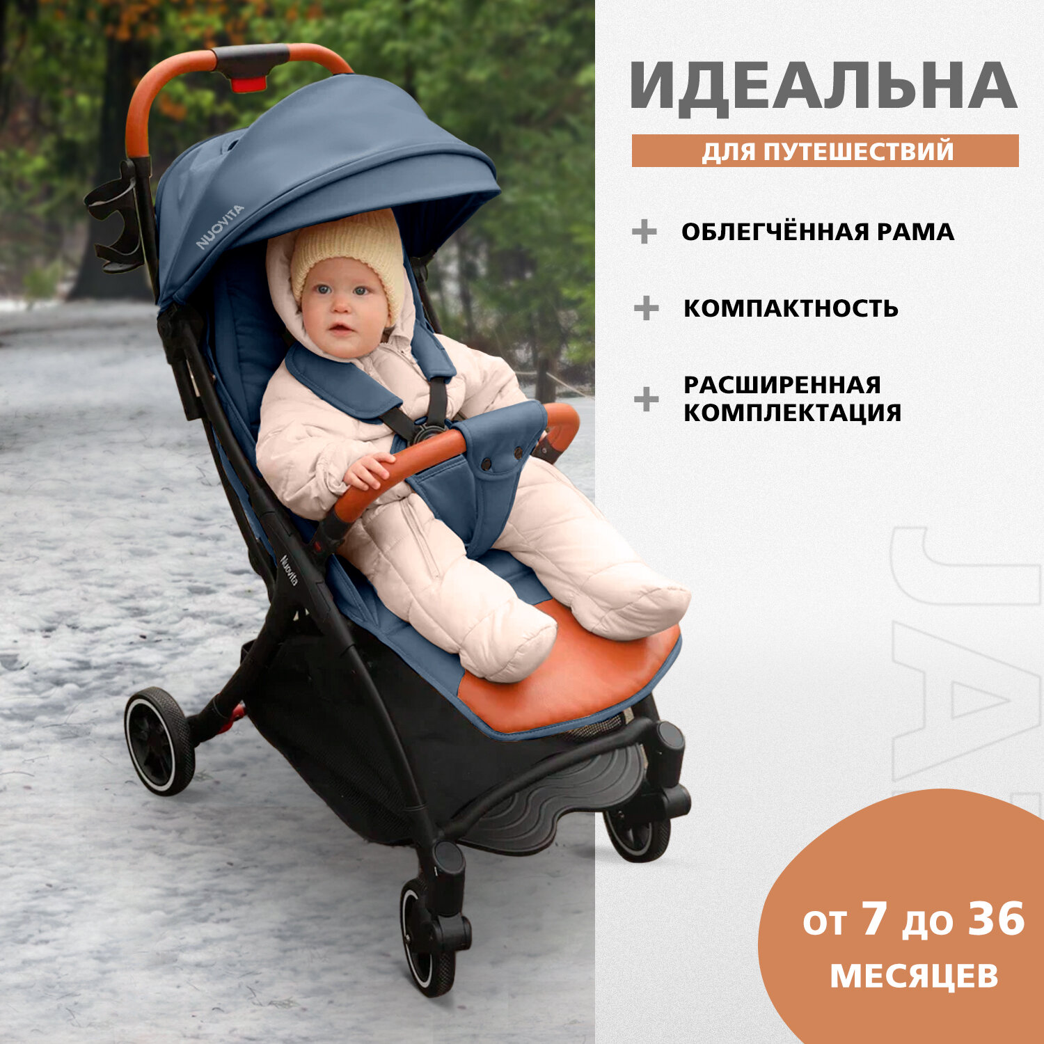 Коляска прогулочная Nuovita Jazz 7-36 месяцев, всесезонная складная детская, с поворотными колесами и амортизацией, легкая для путешествий (Blu/Синий) информация: