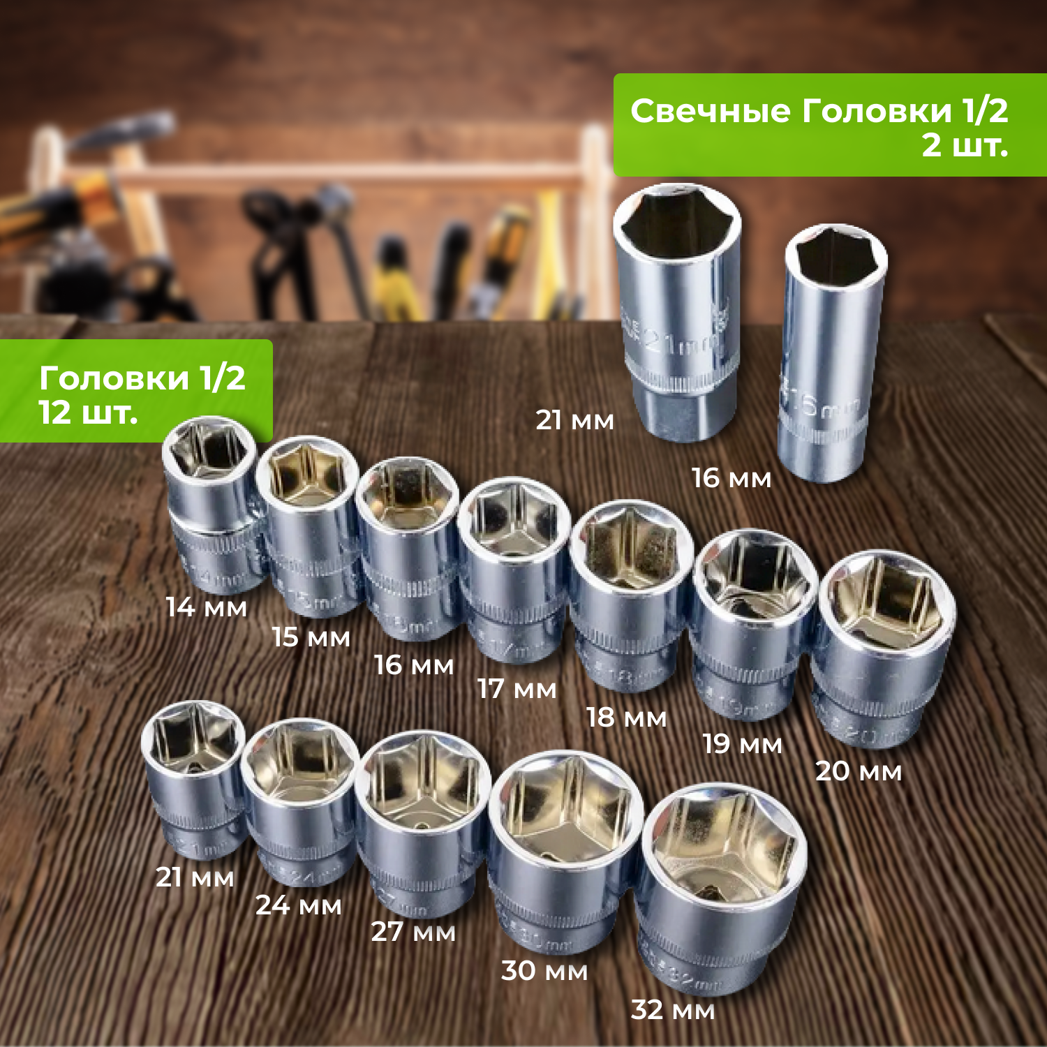 Набор торцевых головок 1/2" кузьмич НИК-027/12, 12 предметов