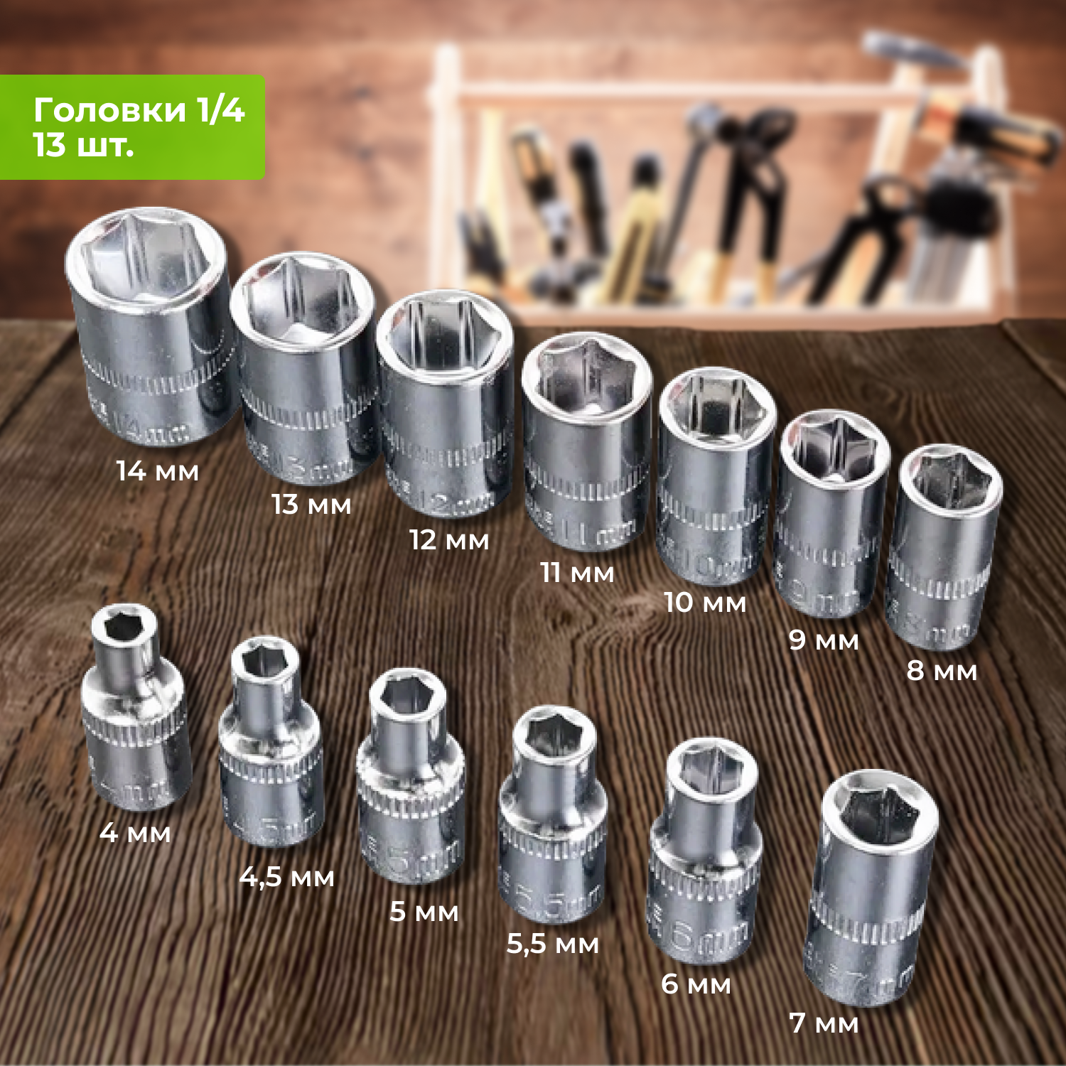 Ключи трубчатые, набор 10 шт. ( 6-22 мм ) Набор торцовых трубок 6х7, 8х9, 10х11, 12х13, 14х15, 16х17, 18х19, 20х22 мм