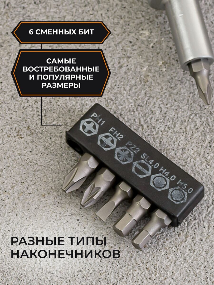 Вихрь Отвертка со сменными битами 6 шт. 73/6/2/16 информация: