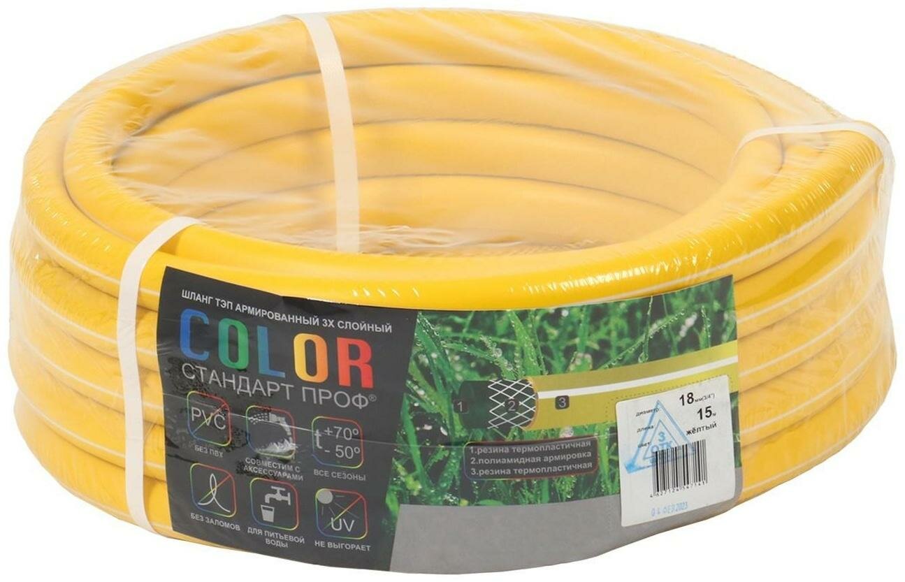 10 цен на Шланг, ТЭП, d = 18 мм (3/4"), L = 15 м, морозостойкий (до –30 °C), COLOR, жёлтый