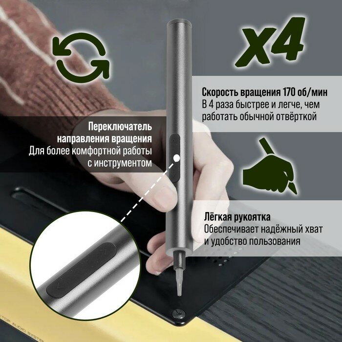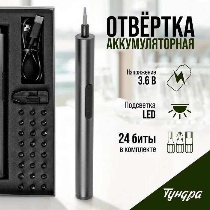 10 цен на Аккумуляторная отвертка для точных работ тундра профи, 3.6 В, 0.35 Ач, Li-ion, 27 предметов