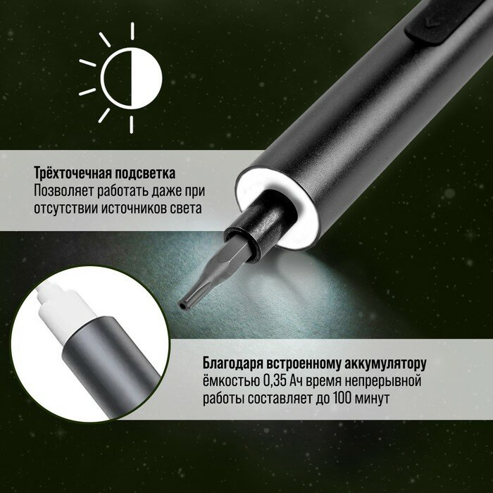 Аккумуляторная отвертка для точных работ тундра профи, 3.6 В, 0.35 Ач, Li-ion, 27 предметов информация:
