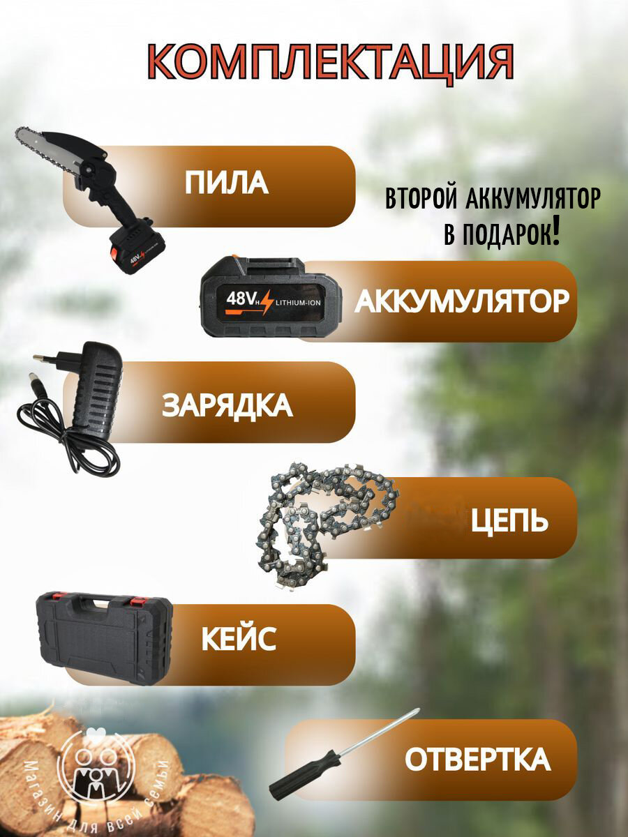 Отзывы на Аккумуляторная цепная пила; Электропила; Два аккумулятора 48Vh (21 вольт каждый) в комплекте, в кейсе