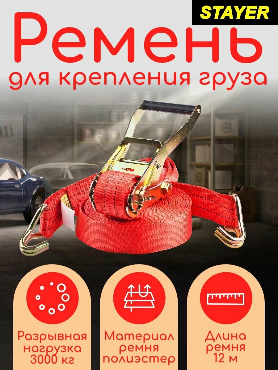 STAYER 12 м, 50 мм, 3 т, ремень для крепления груза (40564-12)