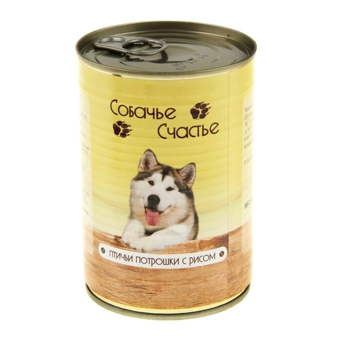 10 цен на Собачье счастье консервы для собак Птичьи потрошки с рисом 410г