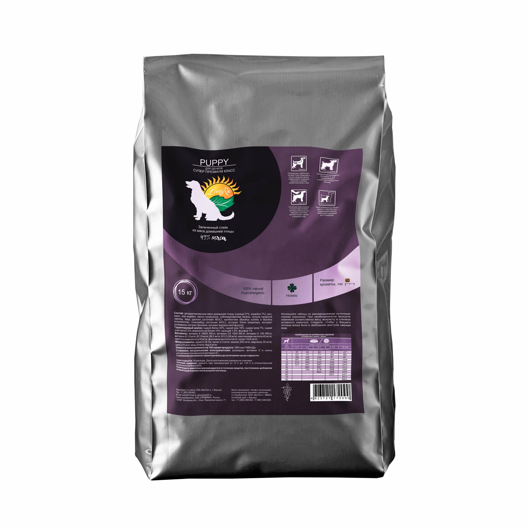LiveRa Полнорационный сухой корм для щенков Puppy, 15 кг - вкус стейк из домашней птицы информация: