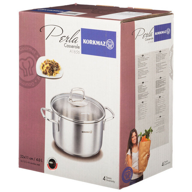 Кастрюля с крышкой KORKMAZ, нержавеющая сталь, 4л информация: