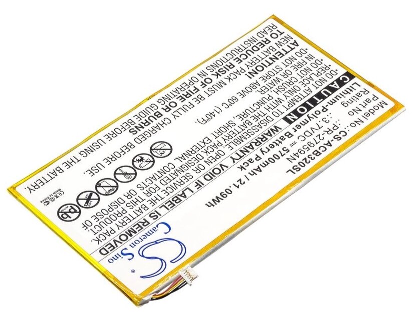 Аккумуляторная батарея CameronSino CS-ACB320SL для планшета Acer Iconia One B3-A20, Tab A3-A40 (PR-279594N) 5700mAh информация:
