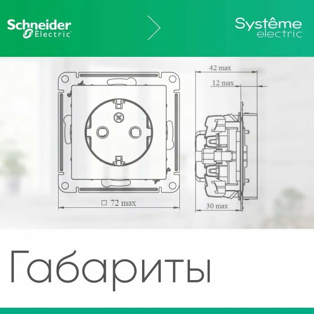 Розетка силовая штепсельная Systeme Electric / Систем Электрик AtlasDesign, 16А 250В IP20 белый, с заземляющим контактом ATN000143 / электрооборудование 484 ₽