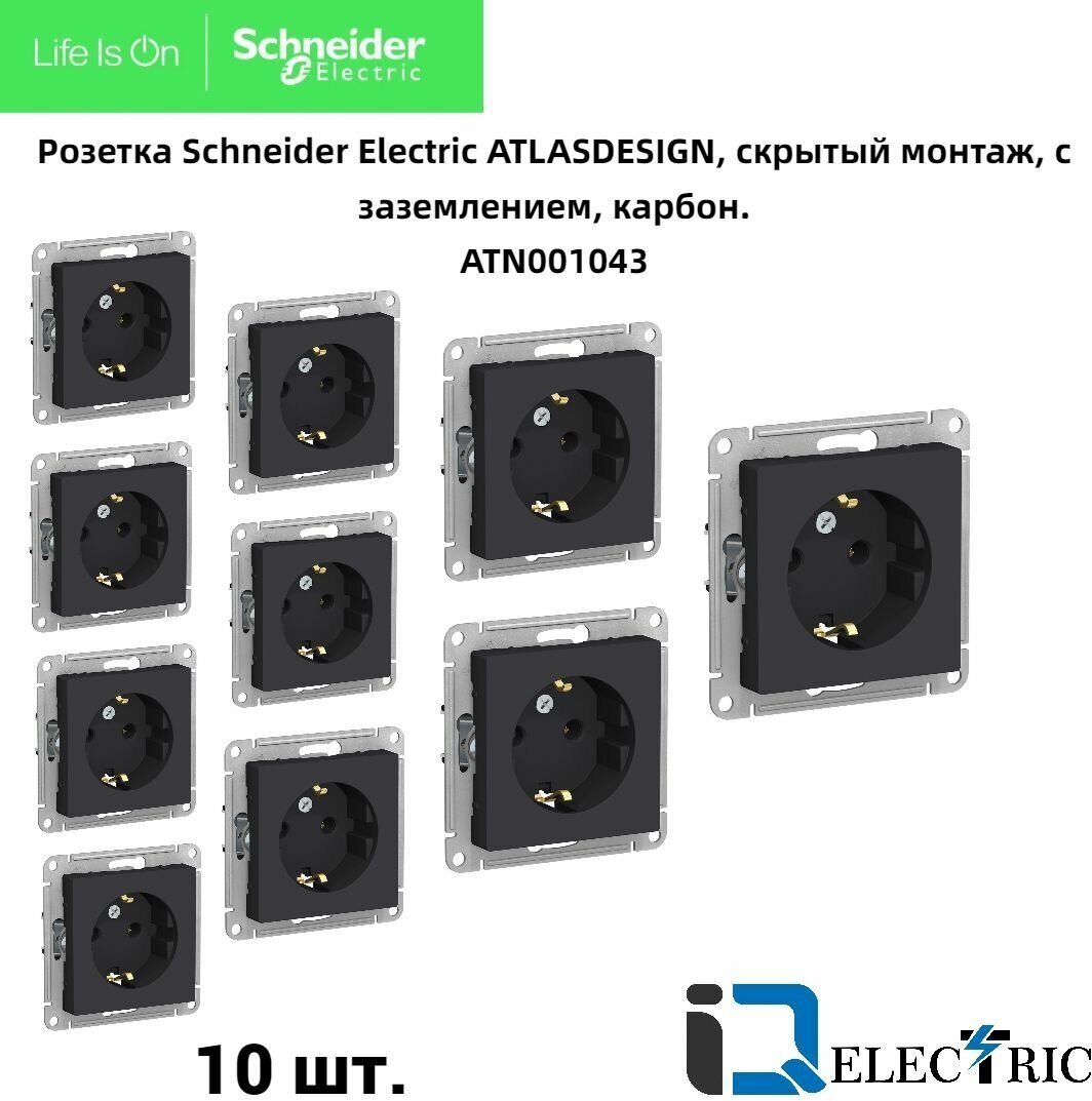 10 цен на Розетка AtlasDesign Schneider Electric Карбон с заземлением ATN001043 - 10шт