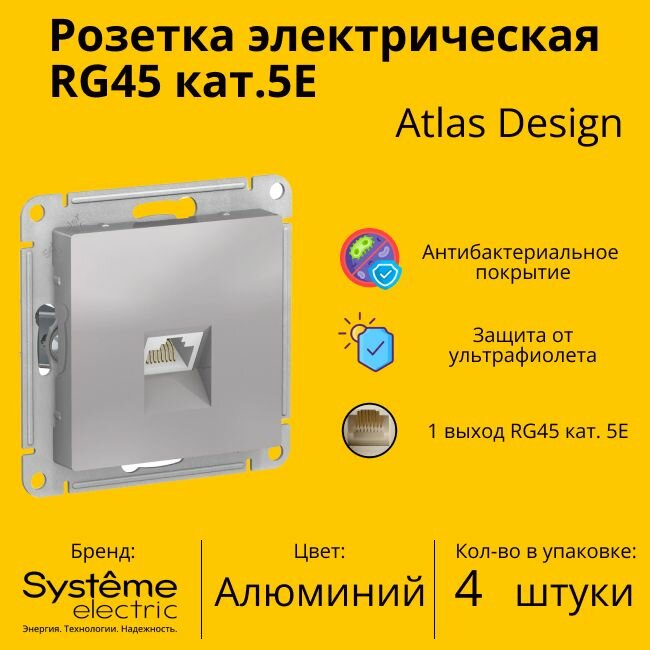 Розетка компьютерная 1xRJ45 Cat.5 ATLASDESIGN, алюминий. ATN000383 Schneider Electric (4шт.) информация: