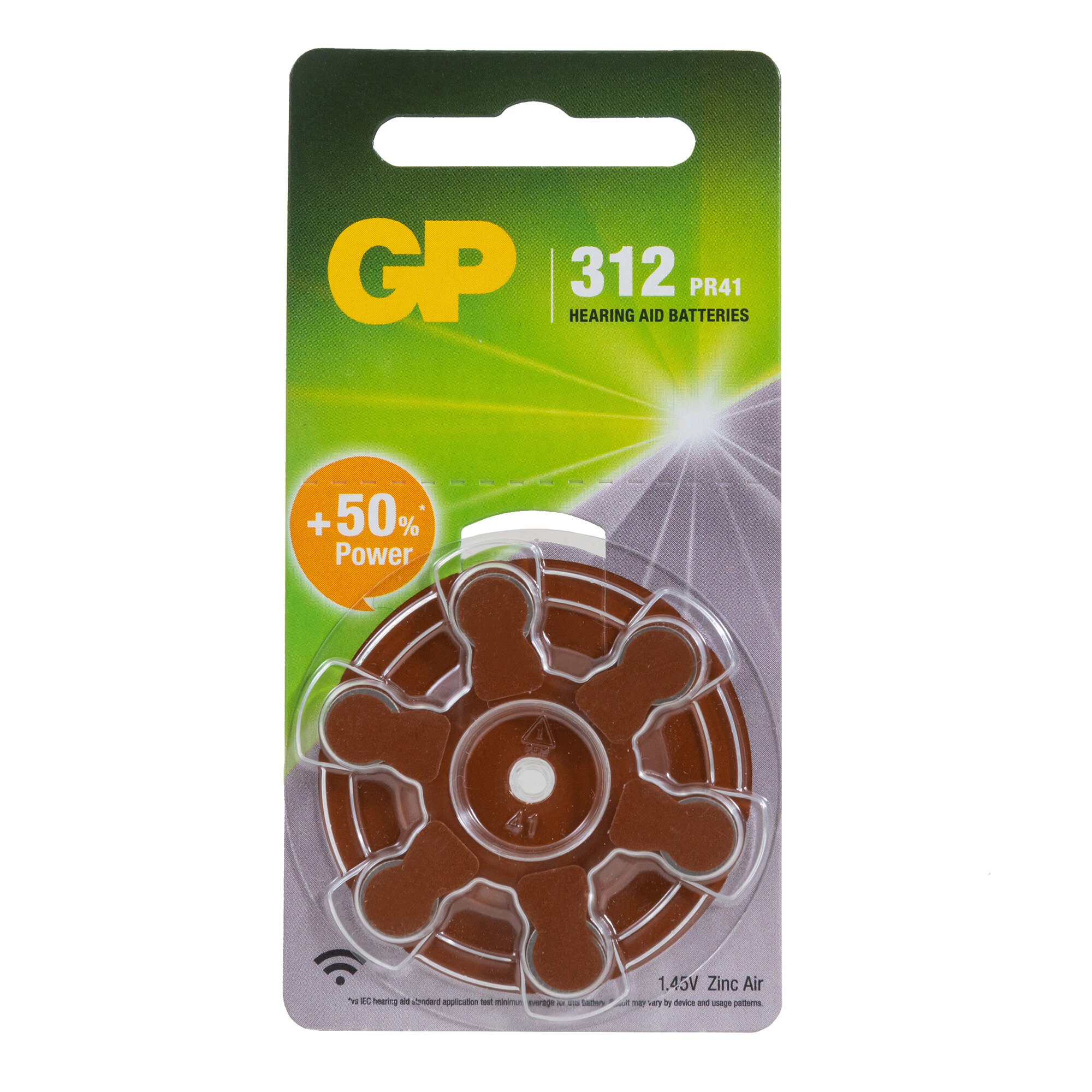 GP Батарейка цинковая GP, ZA312 (PR41)-6BL, для слуховых аппаратов, 1.4В, блистер, 6 шт. информация: