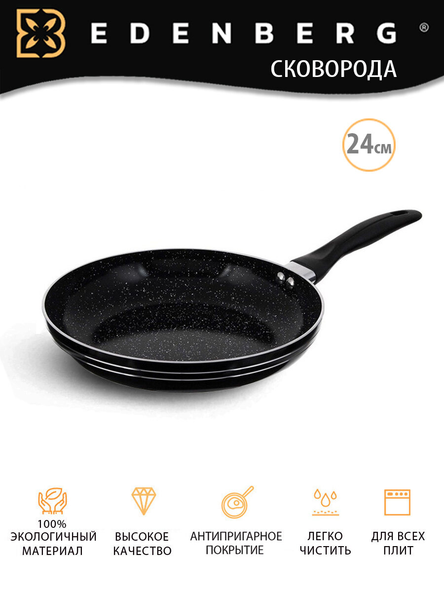 Отзывы на Сковорода с антипригарным мраморным покрытием, 24 см, литой алюминий Edenberg, индукционная