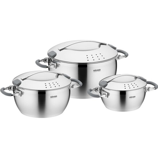 | Дополнительная информация | на внутренних стенках посуды нанесена маркировка литража; встроенный дуршлаг на крышке кастрюли; складные ручки |