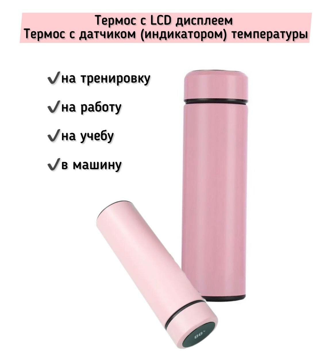 Термос с LCD дисплеем / Термос с датчиком (индикатором) температуры / Термобутылка / Автокружка/ Розовый информация: