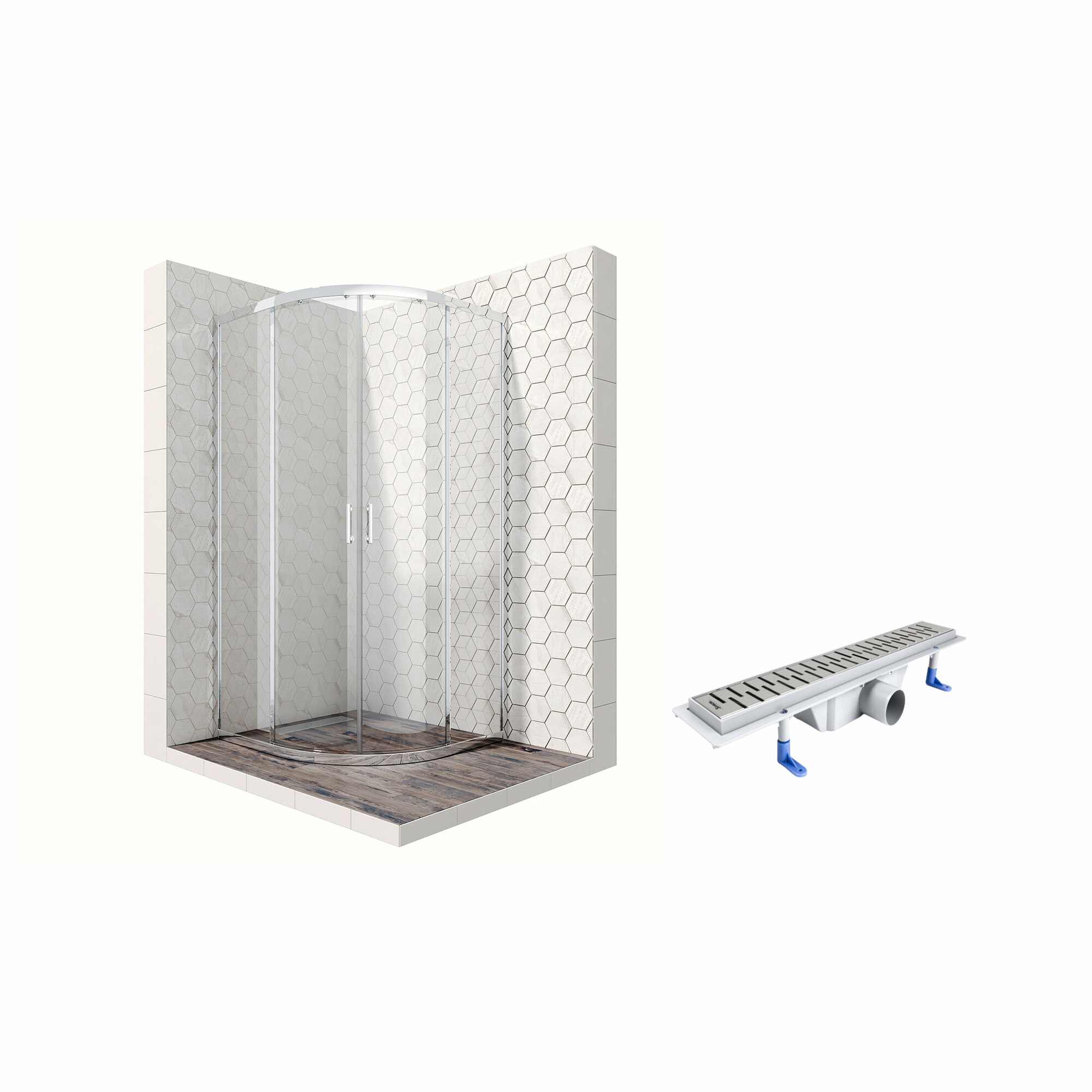 10 цен на Комплект полукруглого душевого ограждения с линейным трапом Ambassador Kingston 14011104-ST5, с EasyClean, 90 х 90 см