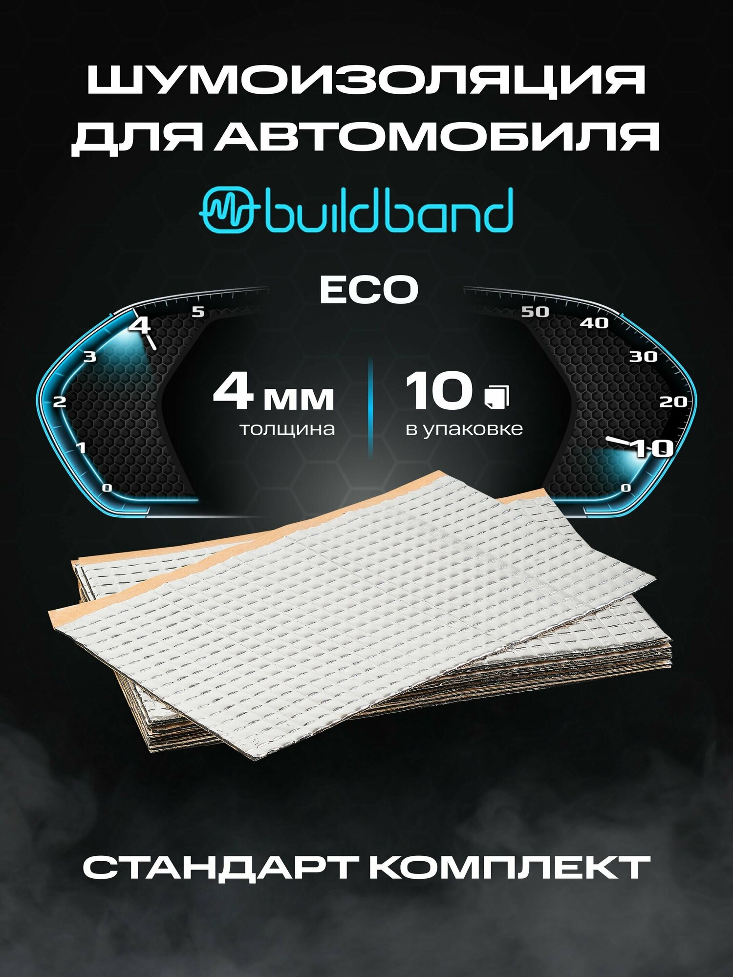 Шумоизоляция buildband ECO 4, комплект 10 листов / Виброизоляция для машины самоклеящаяся/Шумка звукоизоляция 1 170 ₽