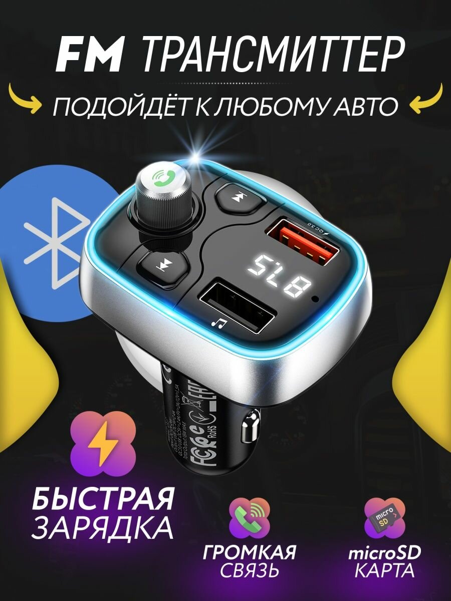Орбита / TS-CAF120 FM-трансмиттер с bluetooth/микрофоном/ для автомобиля/ зарядник QC 3.0 для авто в прикуриватель