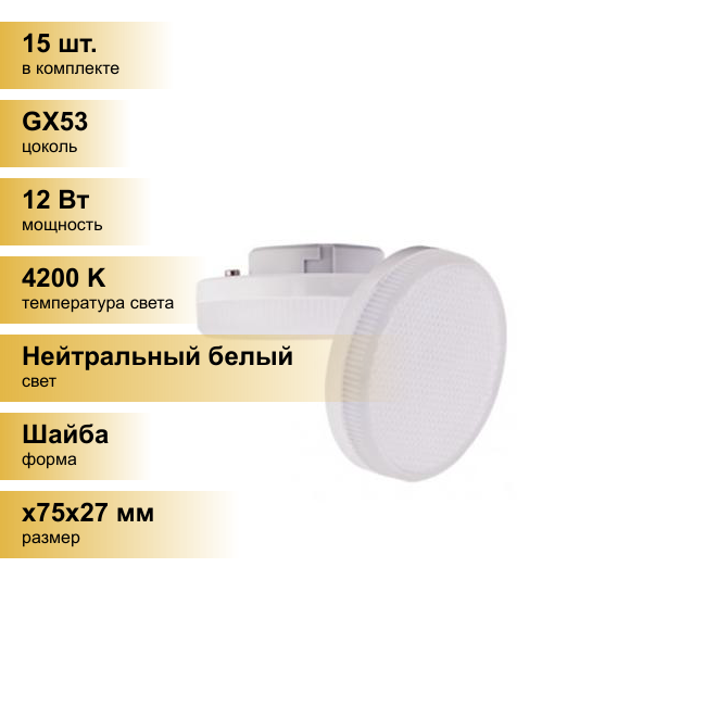 10 цен на Упаковка светодиодных ламп 3 шт. Ecola Premium GX53 12Вт 4200 K нейтральный дневной белый свет, таблетка led, T5UV12ELC, матовая